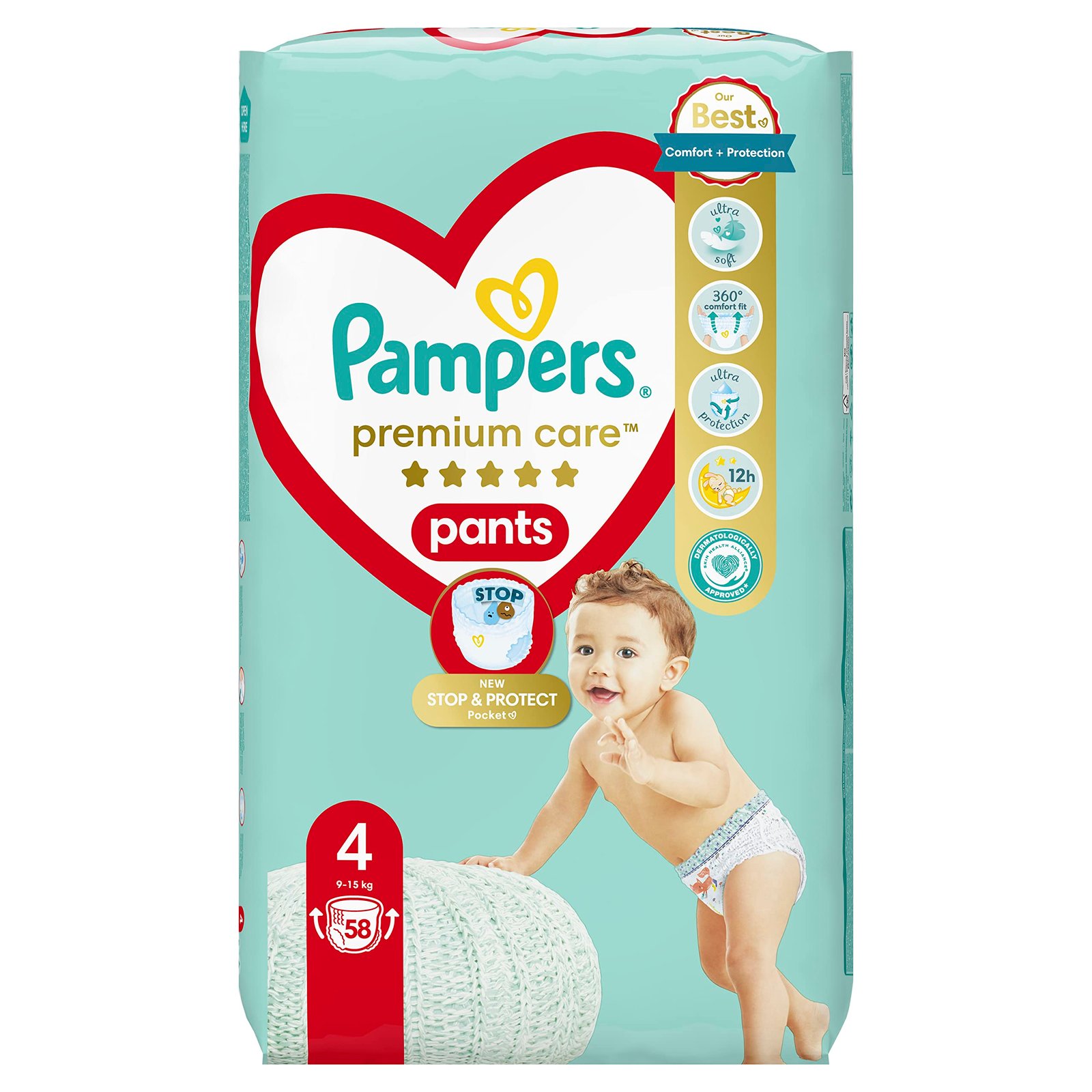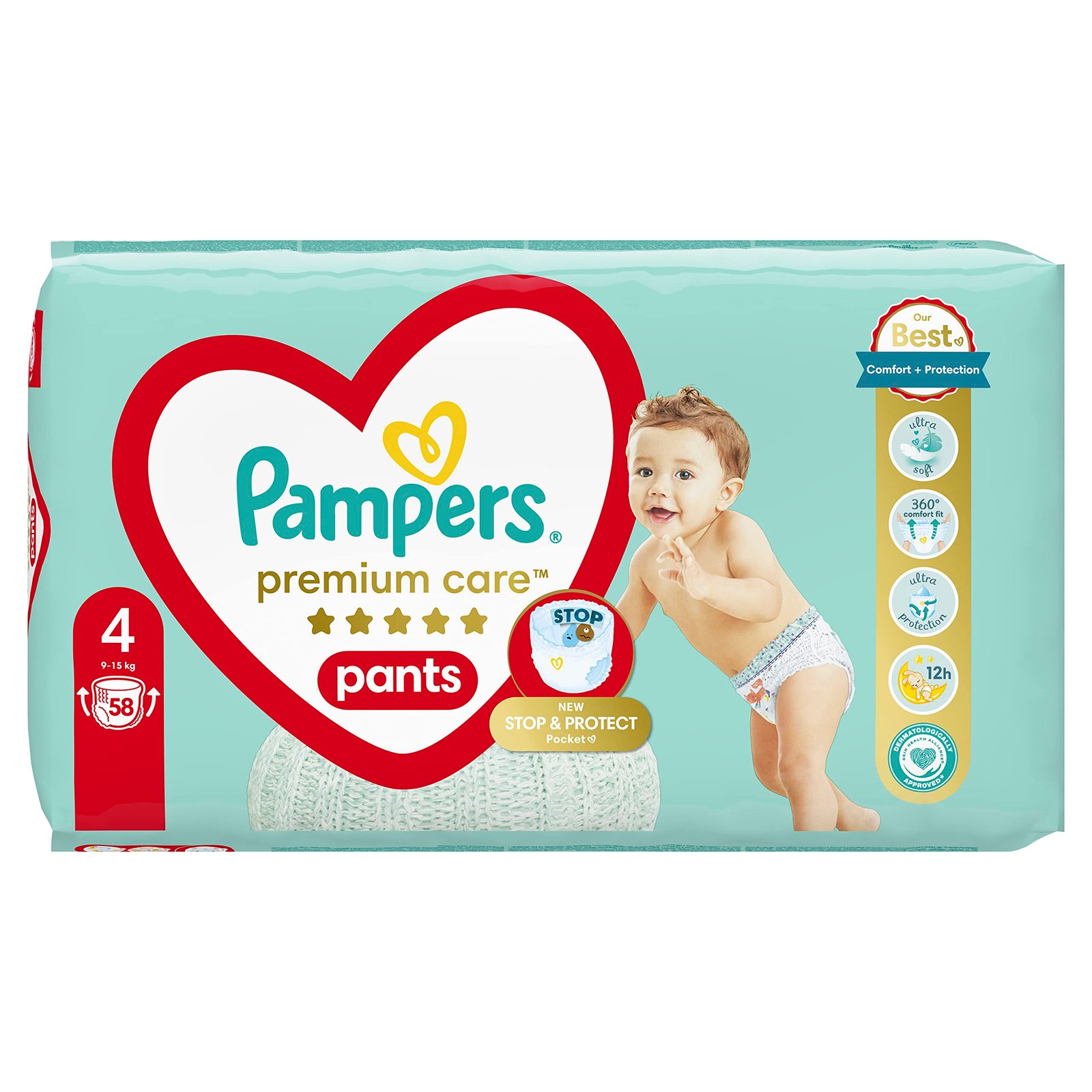 Pampers Große 3 bietet besten Komfort und Schutz von Pampers durch weiche, flexible Materialien|Die Pampers Premium Care Windelhose ist einfach anzuziehen: Einfach einsetzen und ziehen|Einfach zu entfernen: um sie zu entfernen, ziehen Sie einfach die Seiten, bevor Sie die Windeln wickeln und mit einem Band sichern|Stop & Protect Tasche für bis zu 12 Stunden Auslaufsicher|360 Grad Vollständige Passform: hat ein elastisches Band um die Taille, das 360 Grad volle Passform bietet und hilft, Auslaufen zu verhindern|Feuchtigkeitsanzeige, die Sie mitteilt, wenn Sie die Windeln wechseln müssen|Die extrem saugfähige Patrone nimmt Feuchtigkeit blitzschnell auf und bietet einen vollständigen Schutz gegen Auslaufen von bis zu 12 Stunden|Von Dermatologen der Skin Health Alliance genehmigt, was die Hautverträglichkeit der Kinder bestätigt