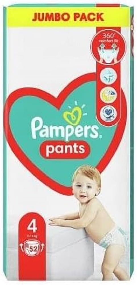 Pampers Pants Windeln Große 4 (9-15 kg), 52 Stück, Schutz & Komfort Pampers in Einfach anzubringenden Windeln