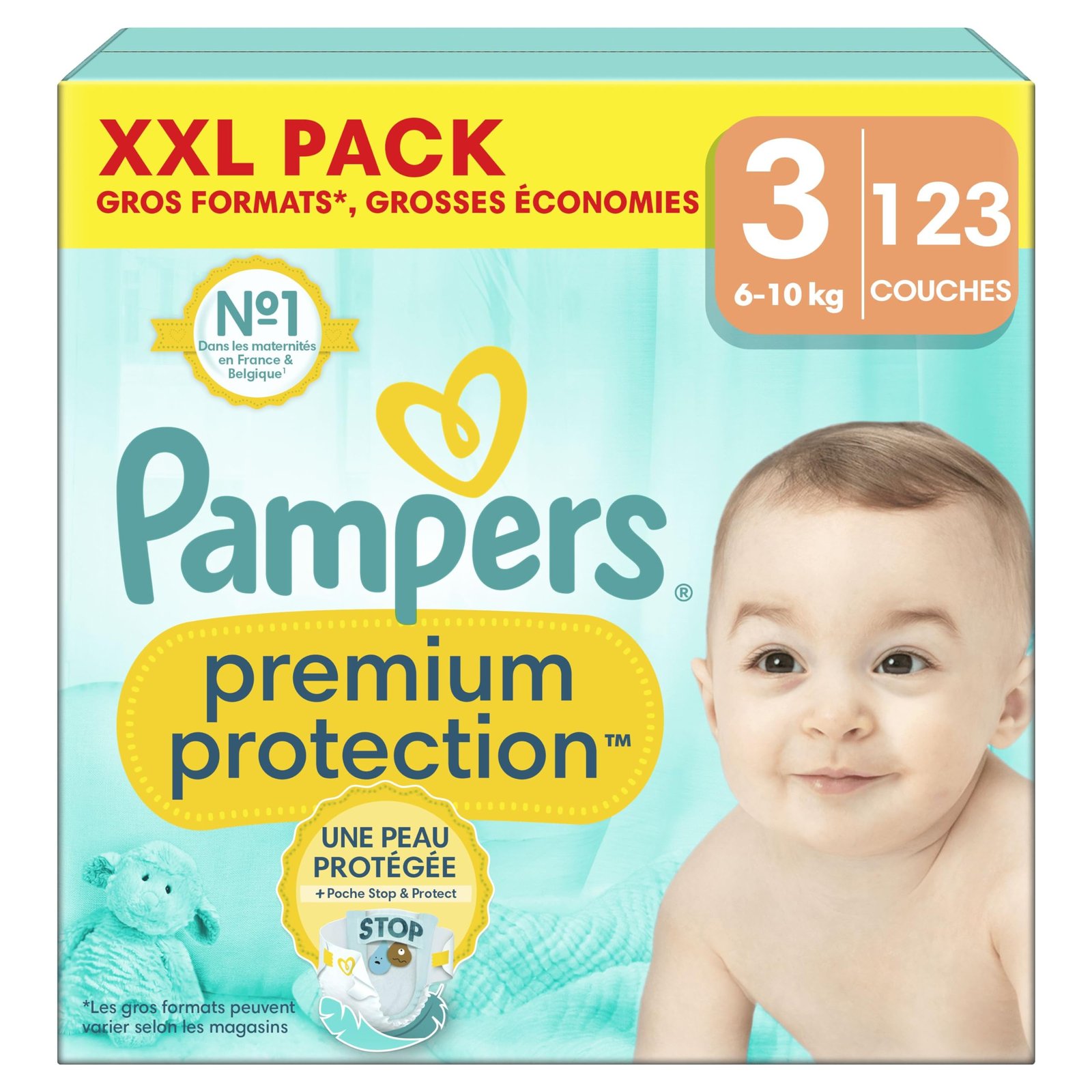 Pampers Premium Protection Größe 3, 123 Windeln, 6 kg – 10 kg, doppelter Schutz für die Haut und gegen Auslaufen