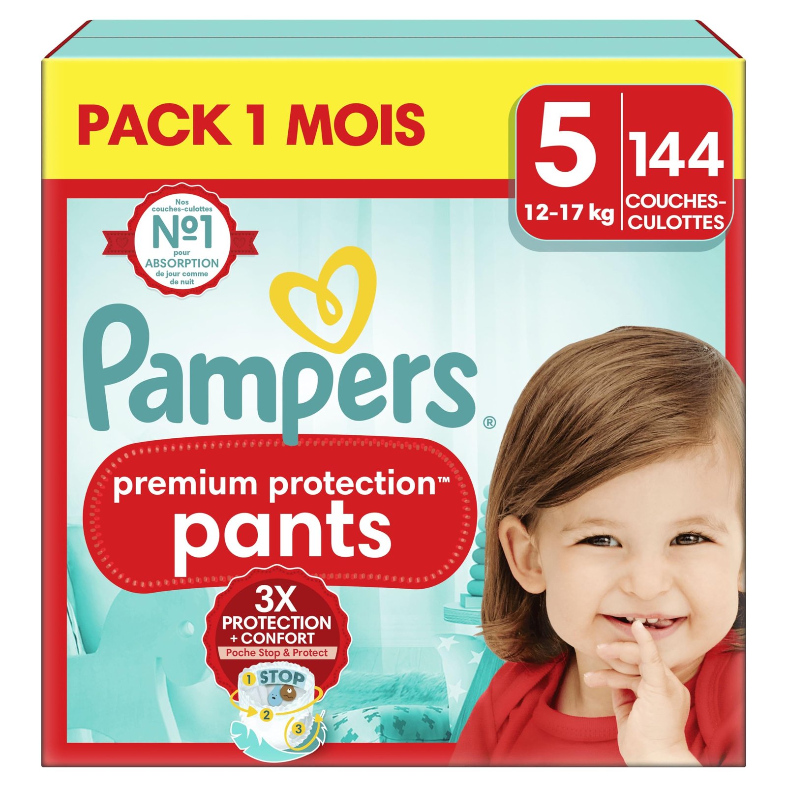 Pampers Premium Protection Pants Große 5, 144 Windeln, 11kg-17kg, Mit 360° Passform und 2x breiteren Bündchen als vorher für unseren besten Komfort & Schutz