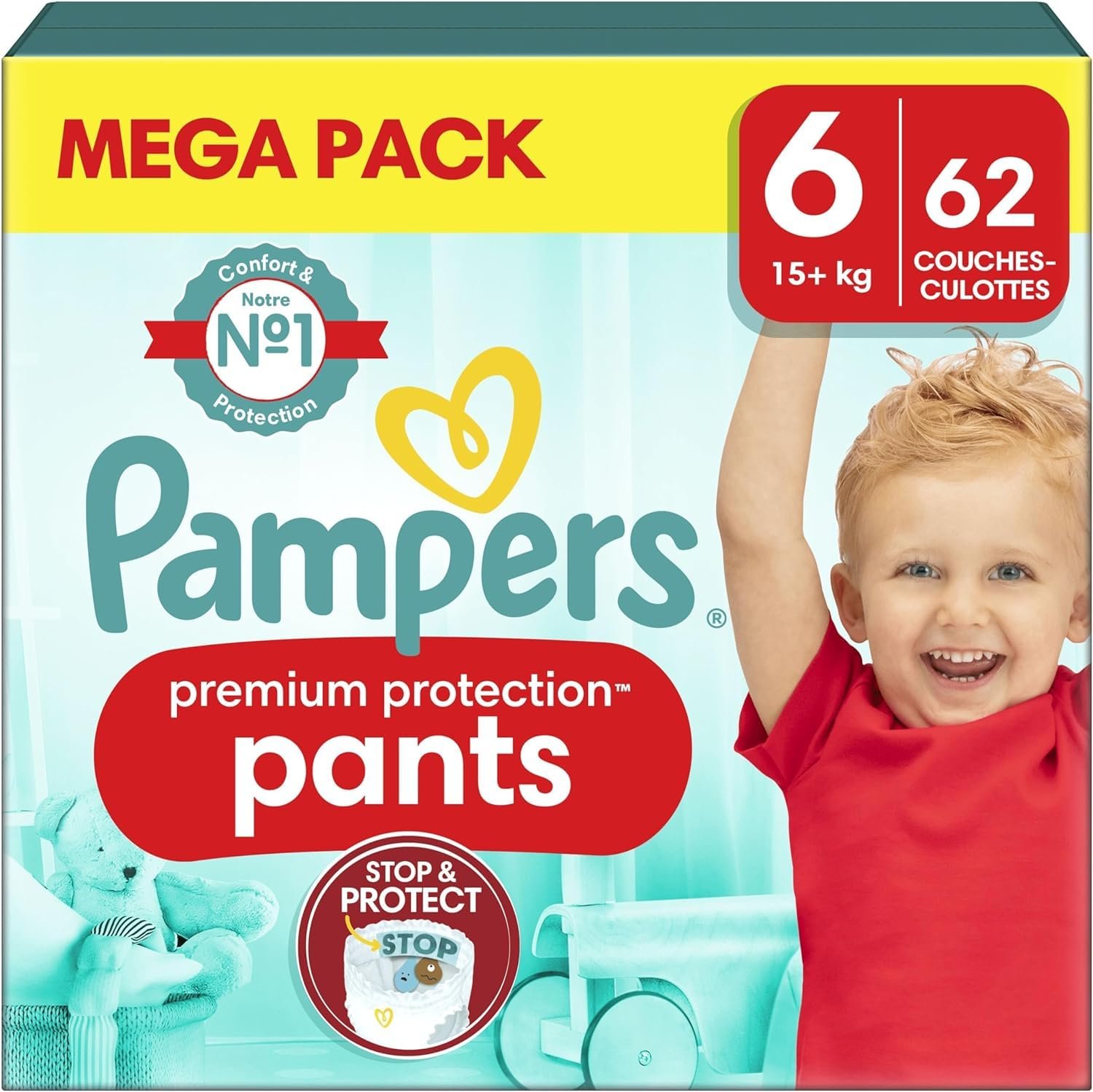 Pampers Premium Protection Windeln, Große 6, 62 Höschen, 15 kg+, Höschen Pampers Nr. 1 für Komfort und Halt, einfach anzuziehen