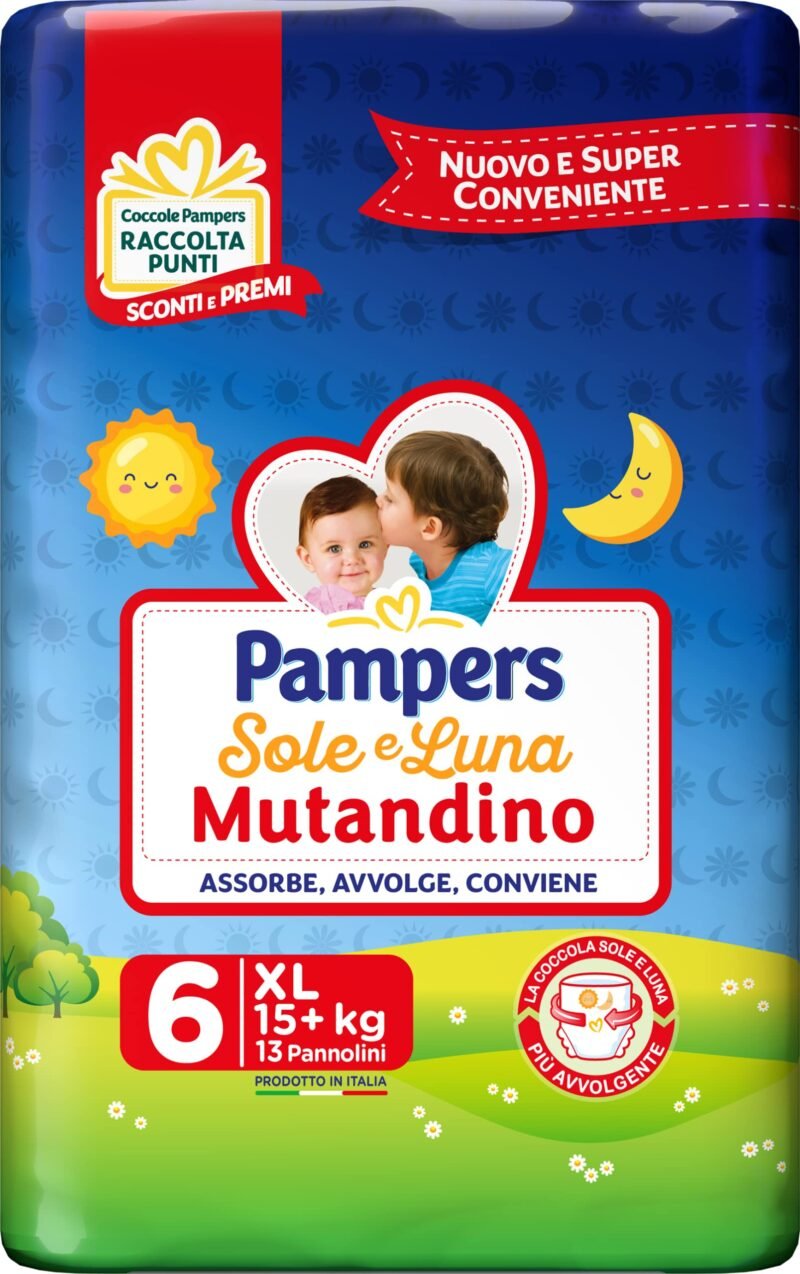 Günstige Pampers Panty mit Windeln Sole&Luna|Ausgestattet mit einem um 360 Grad umwickelbaren elastischen Band bietet es Ihrem Baby die Bewegungsfreiheit beim Laufen und Spielen an|Lässt sich wie ein Höschen tragen und dank praktischer Seitenöffnung schnell wieder abnehmen|Sole&Lune Höschen vereinen dank saugfähiger Mikrogranulate den trockenen Komfort von Babydry