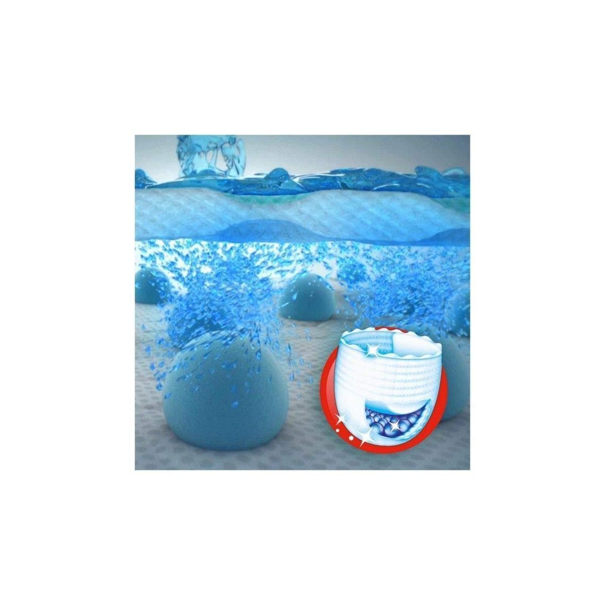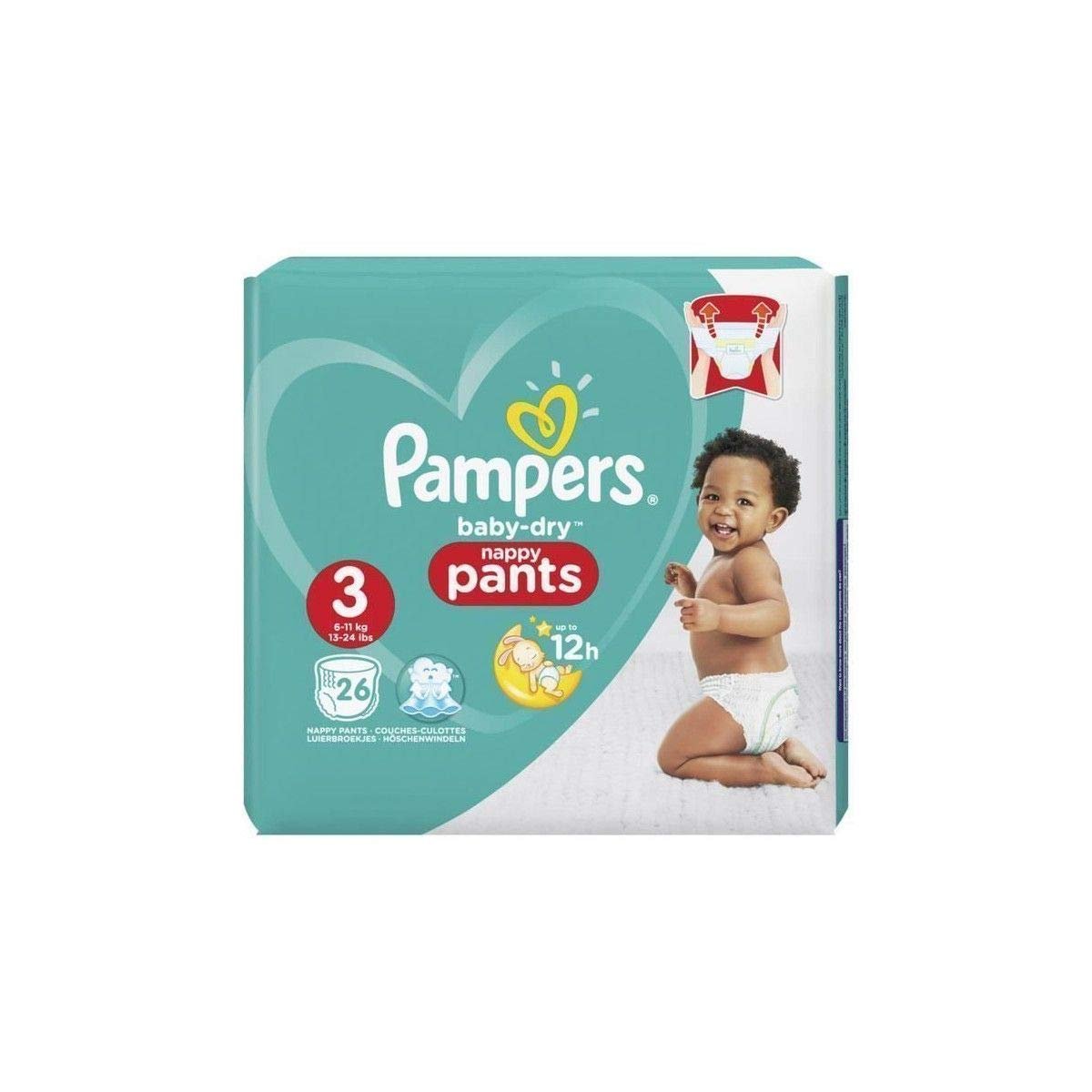 Pampers Baby-Dry Pants können leicht an- und ausgezogen werden: einfach die Seiten reißen.|Luftkanäle in der Windel lassen Luft zirkulieren für bis zu 12 Stunden atmungsaktive Trockenheit.|Starke Saugkraft Micro Pearls absorbiert Feuchtigkeit und verbindet einen|Weich wie Baumwolle, damit sich Ihr Baby den ganzen Tag lang gut anfühlt.|Elastischer Beinabschluss elastische Bündchen an der Taille und passen sich den Bewegungen Ihres Babys perfekt an.