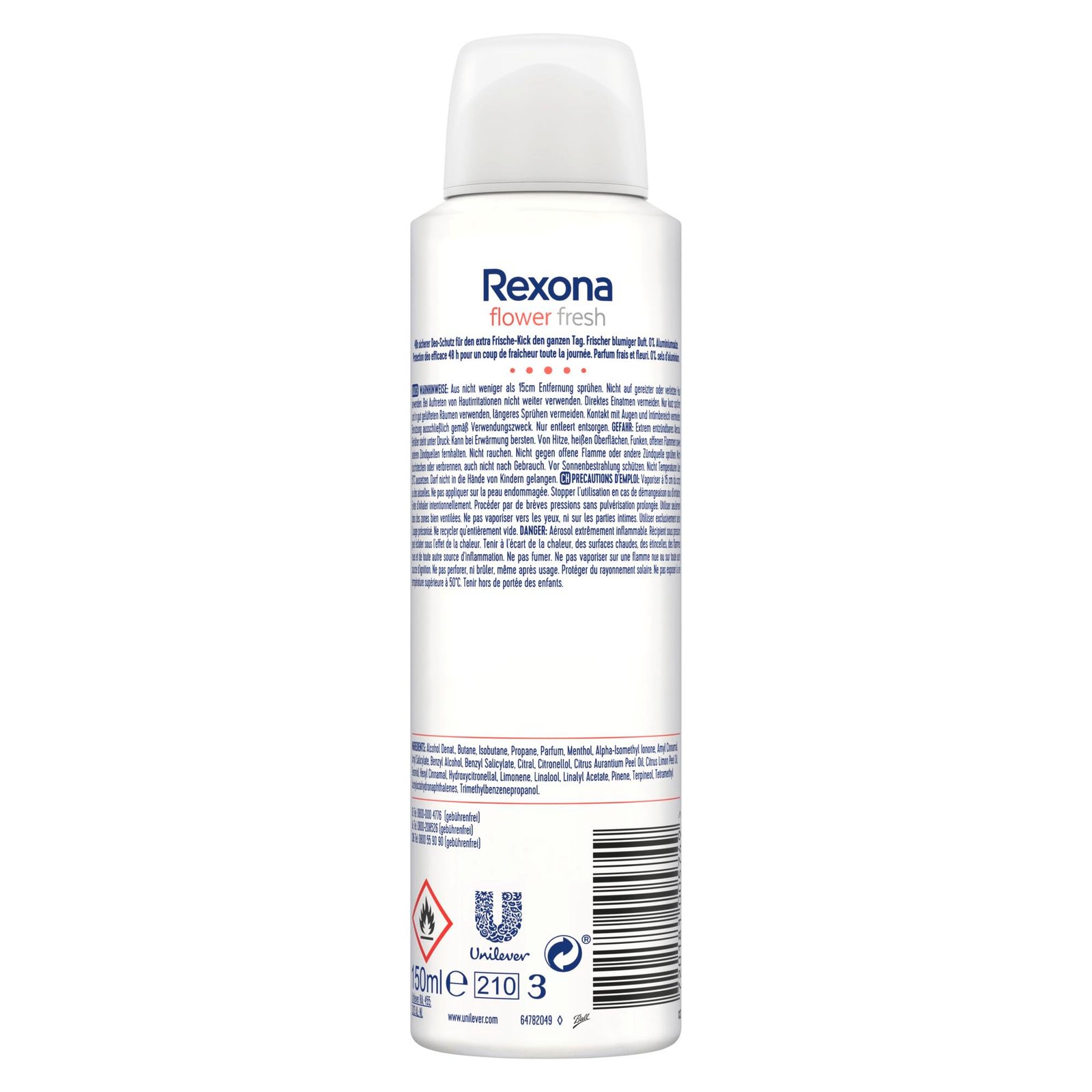 Rexona Deospray Flower Fresh für langanhaltende Frische mit frischem und feminin-dezentem Duft|Das Deo verleiht einen Frische-Kick|Das Deo ohne Aluminium schützt bis zu 48 Stunden vor Körpergeruch|Das Deodorant ist dermatologisch getestet und für die tägliche Anwendung geeignet|Das Aluminium von der Deo Verpackung ist unendlich recyclebar und kann in der EU der Wertstoffsammlung zugeführt werden|Der Deodorant Spray von Rexona lässt niemanden im Stich