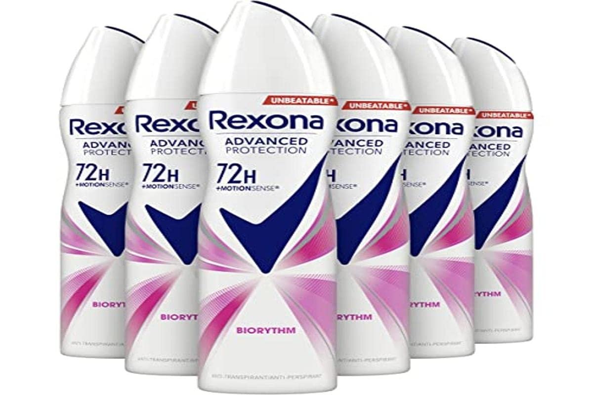 Rexona Women Advanced Protection Biorythm Anti-Transpirant Spray 72 Stunden Schutz vor Schweiß und Körpergeruch – 6 x 150 ml – Vorteilspack