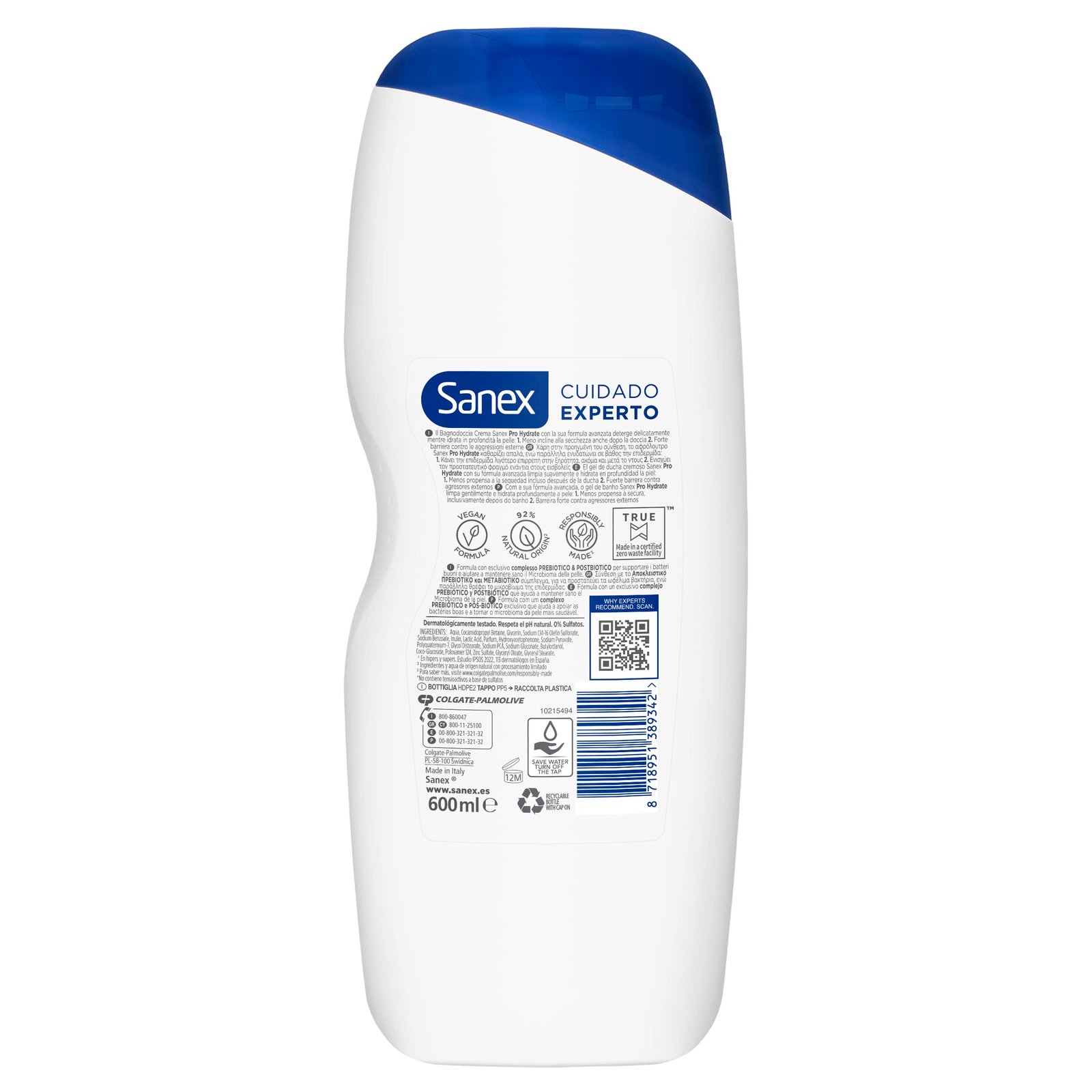 Sanex Expert Care Pro Hydrate, Shower oder Bath Gel, Very Dry Skin, Deep Hydration, Fights Bakterien, 600 ml