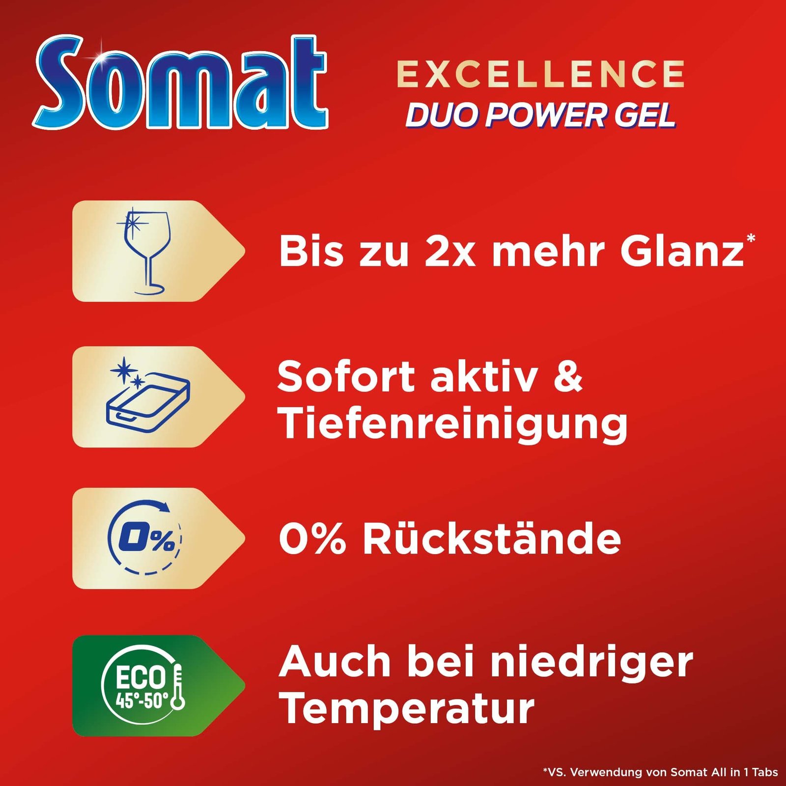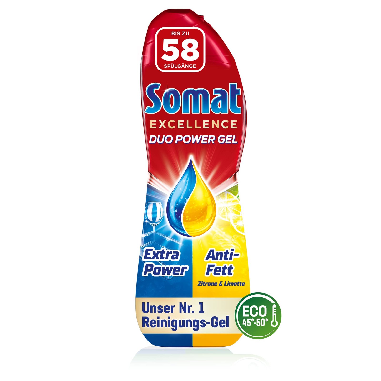 Somat Excellence Duo Power Gel (58 Spülgänge) Spülmittel für die Spülmaschine für strahlend sauberes Geschirr auch im Eco-Programm & bei niedrigen Temperaturen, Zitrone & Limette