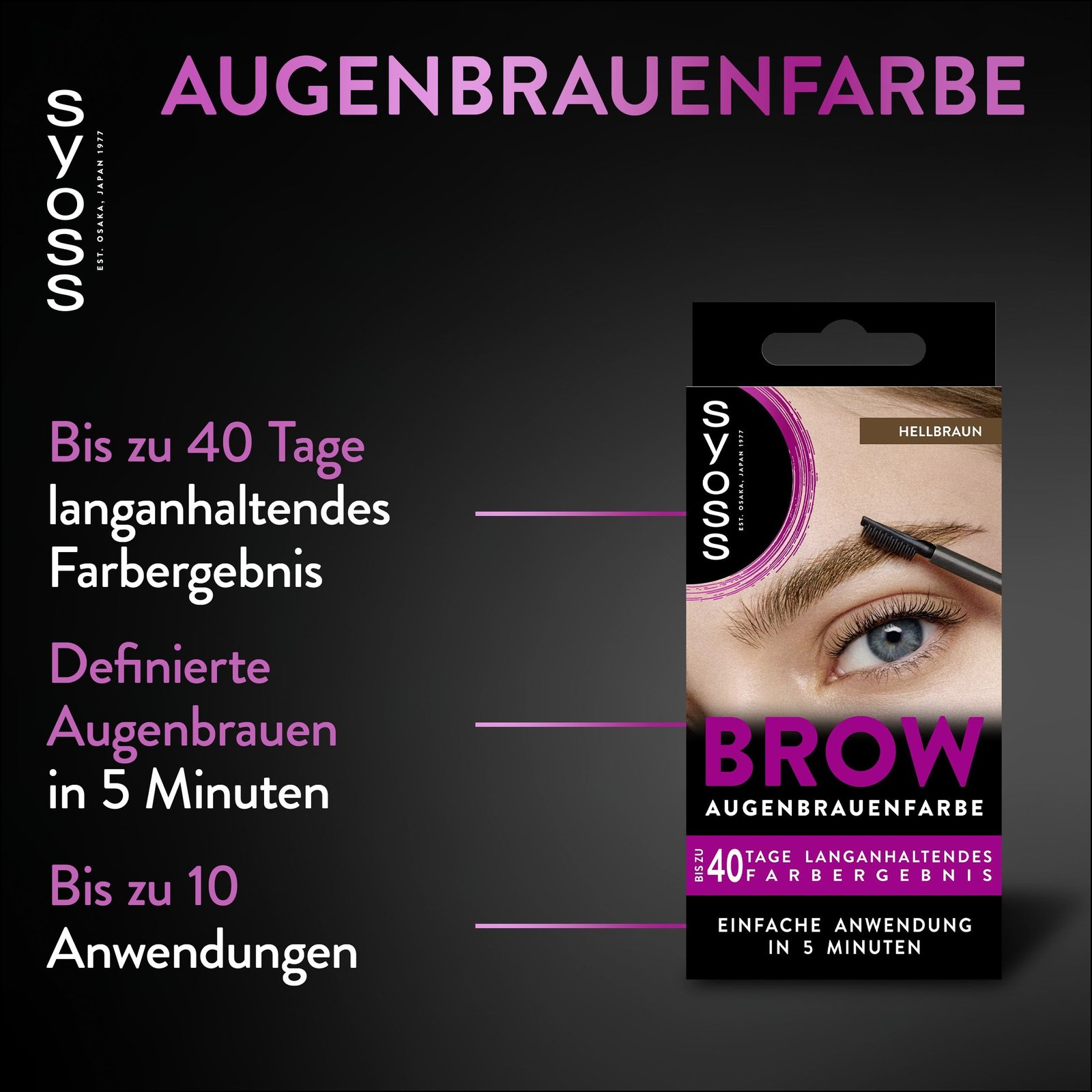 Syoss Augenbrauenfarbe – Mit der permanenten und professionell inspirierten Augenbrauenfarbe von Syoss werden die Augenbrauen betont, intensiviert und definiert|Natürlicher Look & langanhaltendes Ergebnis – Das Syoss Augenbrauen Kit verleiht einen natürlichen Look und ein langanhaltendes Ergebnis für die Anwendung zu Hause|Formel mit professioneller Qualität – Das Set ermöglicht bis zu 10 Anwendungen mit professioneller Augenbrauenfärbung, die jeden Look perfekt abrundet|Extra Tipp – Um einen natürlichen Effekt zu erzielen, eine der fünf Töne des Augenbrauen Sets wählen, die nur leicht dunkler als das Haar ist|Einfache und präzise Anwendung – Die Farbe für die Augenbrauen (Color-Creme) mit der Entwicklerlotion vermischen und mit der Anwendungsbürste auf die Augenbrauen auftragen