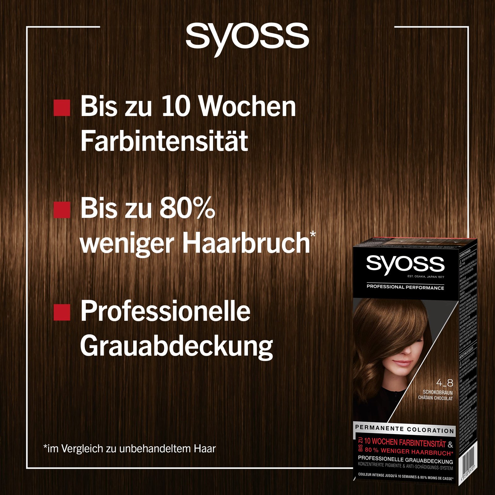 Syoss Color Coloration 4_8 Schokobraun Stufe 3 (3 x 115 ml), permanente Haarfarbe für bis zu 10 Wochen Farbintensität und 70% weniger Haarbruch*