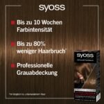 Intensive Farben – Syoss Color ist eine dauerhaft haltbare Coloration für intensive, langanhaltende Farben, professionelle Grauabdeckung & bis zu 70 % weniger Haarbruch*|Konzentrierte Farbpigmente – Die Farbpigmente der Syoss Haarfarbe dringen tief in alle Haarschichten ein – für eine intensive Farbe und professionelle Grauabdeckung|Anti-Schädigungs-Pflege – Die Anti-Schädigungs-Pflege verleiht eine verbesserte sichtbare Haarqualität & bis zu 70 % weniger Haarbruch*|Salonplex-Technologie – Dank Salonplex Anti-Schädigungs-Pflege-Technologie werden beim Haare Färben Haarschäden ausgeglichen und die Haarfaserbindungen erneuert|Syoss Sortiment – Entdecke das komplette Syoss Sortiment und wähle die passende Nuance aus den unterschiedlichen Haarfarben aus