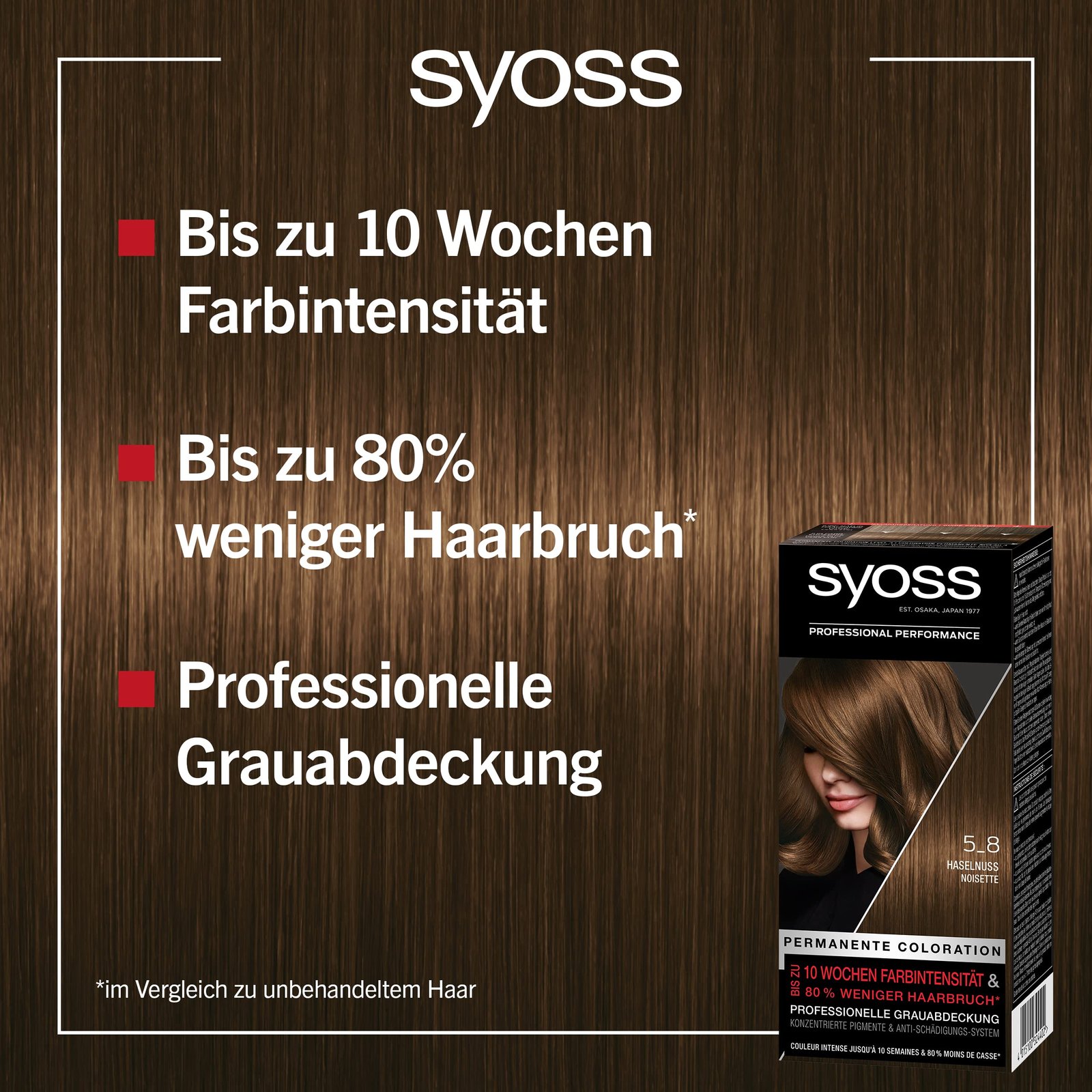 Syoss Color Coloration 5_8 Haselnuss Stufe 3 (3 x 115 ml), permanente Haarfarbe für bis zu 10 Wochen Farbintensität und 70% weniger Haarbruch*