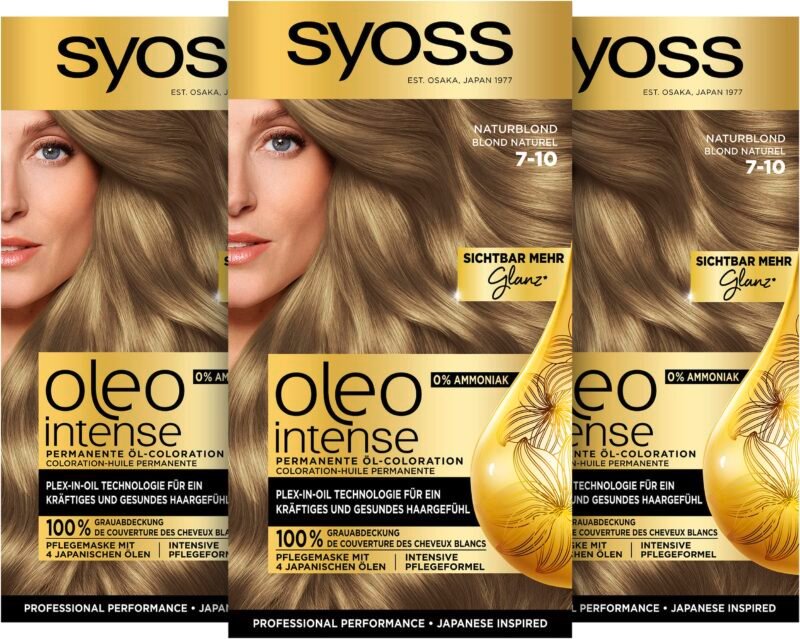 Syoss Oleo Intense Öl-Coloration 7-10 Naturblond Stufe 3 (115 ml), dauerhafte Haarfarbe mit pflegendem Öl, Coloration ohne Ammoniak