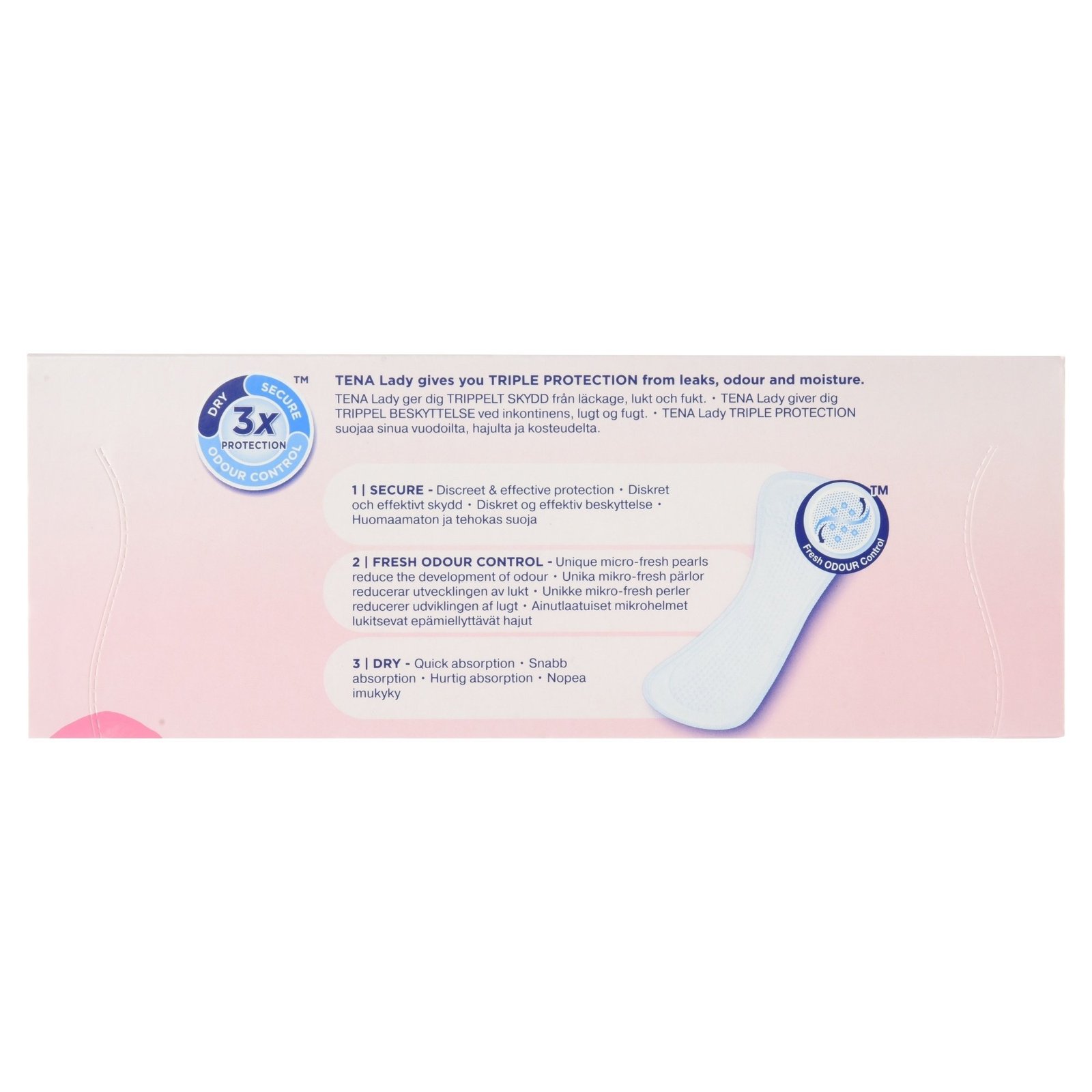 Die gleiche Große wie ein Slipeinlage, aber so viel saugfähigere Frische-Geruchskontrolle für mehr Selbstvertrauen. Seidig weich und sanft. Lock-away Kern für trockenen Komfort. QuickDry-Oberlaken für sofortige Trockenheit