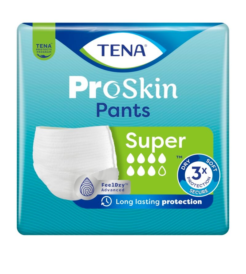 Diskreter Schutz: Tena Proskin Super Inkontinenzhose bietet zuverlässigen Auslaufschutz mit einem superdünnen Design für diskretes Tragen.|Bequeme Passform: Weiches, hautähnliches Material fühlt sich angenehm auf der Haut an und passt wie normale Unterwäsche für ganztägigen Schutz und Komfort.|Auslaufsicherheit: Der fortschrittliche saugfähige Kern schließt Feuchtigkeit und Gerüche ab für ultimative Sicherheit und Diskretion.|Vorteilspack: Diese Packung enthält 4 Boxen mit je 12 diskret gestalteten Inkontinenzhosen, insgesamt 48 Paare.|Zuverlässige Qualität: Tena ist eine vertrauenswürdige Marke für Kontinenzpflege, die von Experten getestete Produkte anbietet, um wie versprochen zu funktionieren.