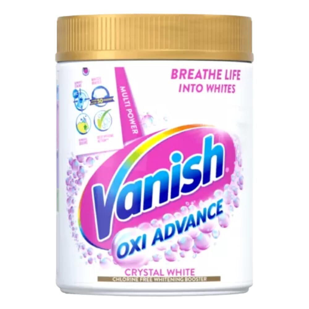De Vanish Oxi Advance Multi Power Booster Poeder Crystal White verwijdert hardnekkige vlekken en geuren en maakt wit nog witter. Zelfs bij lage temperaturen|Verwijdert vlekken vanaf 30°|Houd je witte kleding stralend wit, zelf na 50 wasbeurten|Biedt een perfecte hygiëne|Bevat 840 g Vanish Oxi Advance Multi Power Booster Poeder Crystal White