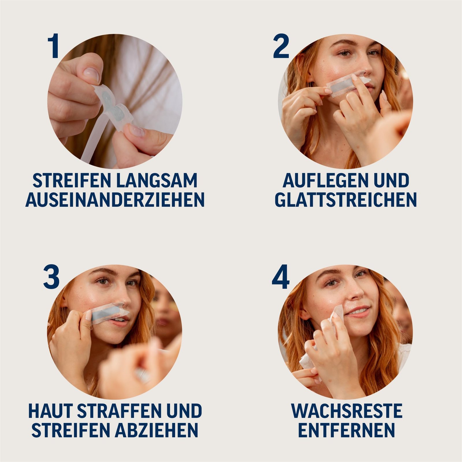 SCHNELL UND EFFEKTIV: Veet Kaltwachsstreifen für das Gesicht lassen sich durch die Easygrip-Lasche noch einfacher abziehen und sorgen für bis zu 28 Tage glatte Haut|FÜR DIE ANWENDUNG IM GESICHT: Die Kaltwachsstreifen entfernen auch kurze Haare ab 1,5 mm von Oberlippe, Kinn oder Wange. 4 Pflegetücher mit Arganöl entfernen anschließend Wachsreste und pflegen die Haut|EFFIZIENTE UND SICHERE ENTHAARUNG: Für eine effektive Haarentfernung ohne Rasieren – Keine Sorge vor lästigen Stoppeln, Schnittverletzungen und eingewachsenen Haaren|FÜR ALLE HAUTTYPEN: Dermatologisch getestet und selbst für sensible Haut geeignet. Die Wachsformel enthält pflegendes Mandelöl und hinterlässt ein angenehmes Hautgefühl|HOW-TO-VIDEOS: Über den QR-Code auf der Verpackung gelangst du zu hilfreichen Video-Anleitungen, welche dir die Anwendung in nur 4 einfachen Schritten zeigen|LIEFERUMFANG: Im Lieferumfang enthalten sind 10 Doppelstreifen (= 20 Einzelstreifen nach Auseinanderziehen) der Veet Expert Kaltwachsstreifen für das Gesicht sowie 4 Pflegetücher