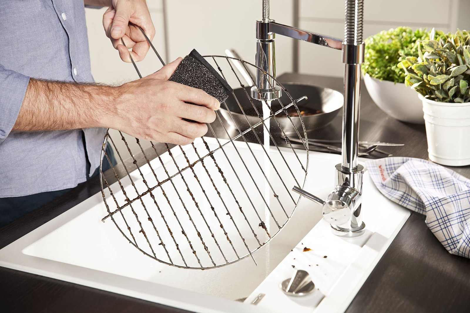 Vileda Glitzi Power Inox, Stahlschwamm gegen hartnäckige Verschmutzungen, länger haltbar, hygienische Reinigung, Härtegrad 3, 2er Pack