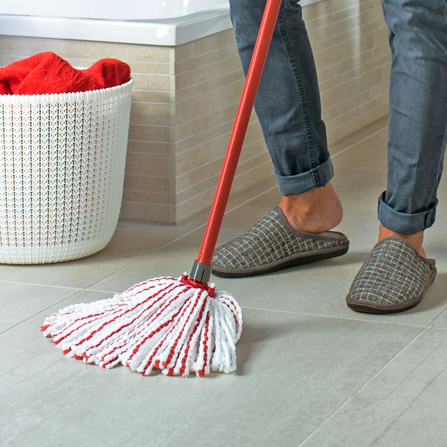 ENTFERNT ÜBER 99% DER BAKTERIEN NUR MIT WASSER – Dank fortschrittlicher Mikrofasertechnologie, beseitigt der Vileda SuperMocio Microfibre and Power Moppkopf bis zu 99 % der Bakterien mit Wasser|OPTIMALE AUFNAHME VON HAAREN UND PARTIKELN – Die roten Fasern des Wischmopps nehmen selbst losen Schmutz effektiv auf, während die weißen Fasern hartnäckigen Schmutz mühelos beseitigen|WIEDERVERWENDBAR UND MASCHINENWASCHBAR – Der Moppkopf kann bei bis zu 30 °C in der Waschmaschine gewaschen werden. Für eine konstante Reinigungsleistung sollte er alle 6 Monate ausgetauscht werden|ZITRONENFÖRMIGER KOPF – Der einzigartig geformte Moppkopf des Vileda SuperMocio Mikrofaser und Power Wischmops erreicht selbst kleine Ecken und Winkel und verspricht eine gründliche Reinigung|HOHE SAUGFÄHIGKEIT – Dank der hochsaugfähigen Fasern werden selbst größere Flüssigkeitsmengen und überschüssiges Wasser mühelos aufgesaugt, wodurch Böden schneller wieder trocken sind